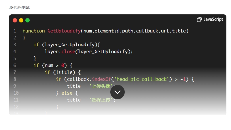 非常好看的代码显示功能,支持会员才可复制功能(不支持静态,需要支持静态需要另外找本人开发),支持开启行高达到以后出现下拉功能,有好的功能需要增加也可以与本人联系!